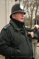 El Palacio de Buckingham es otro de esos lugares llenos de turistas. La reja estaba tan llena de gente, que me subí a una baranda para poder ver a los famosos guardias. Ahí me instalé con mi teleobjetivo, cual fotógrafo de prensa a la espera que llegue alguien importante. Y nuevamente… unos negros fumacocos (ver Pulp Fiction para entender) me dirigen la palabra alegremente: Hey man! The queen is in the bathroom! You can see over there, in the window! Take photos! Yo río... y sigo en mi captura de imágenes. Me entretengo especialmente viendo a los turistas.
